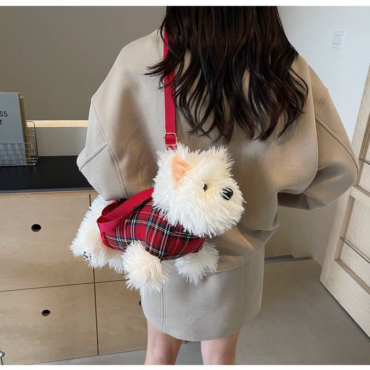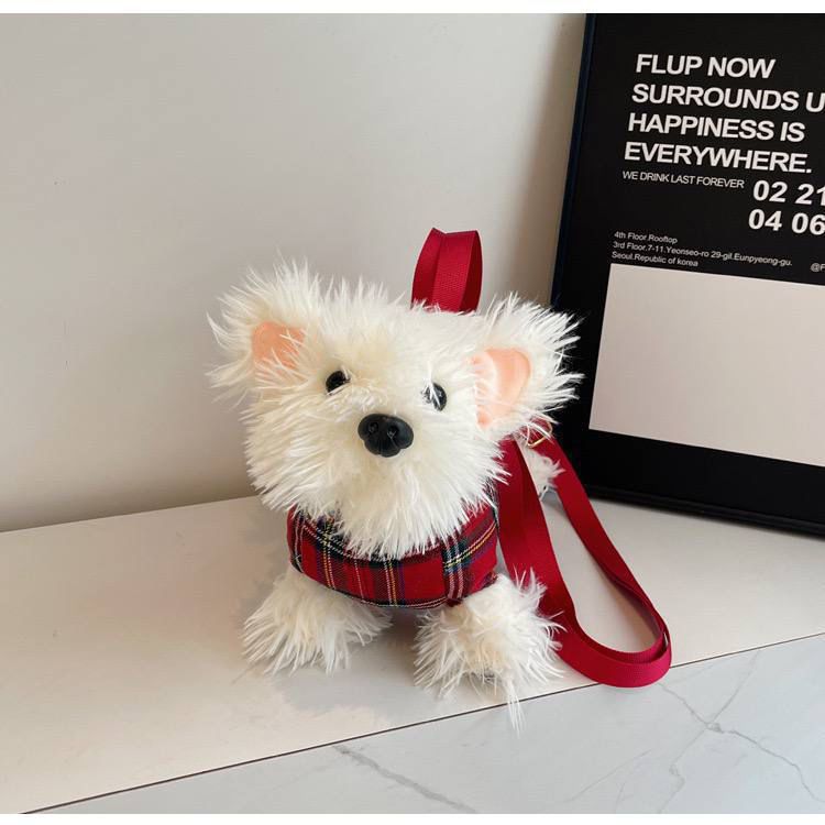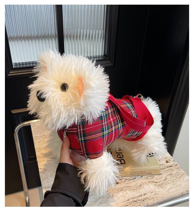 Diseño: El bolso presenta un diseño de felpa suave y realista que simula un cachorro de Westie.