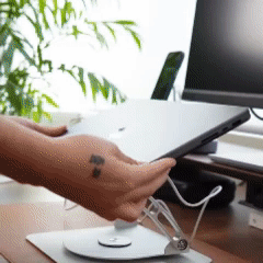“Stefanny 28 años, Antes tenía mi celular tirado en el escritorio y era incómodo revisarlo mientras trabajaba 📱😩 Ahora lo tengo justo frente a mí, puedo ver mensajes o hacer videollamadas sin detenerme 🎥✨ Además el diseño se ve súper limpio y profesional, mi espacio cambió completamente y me siento más enfocada 💯💻”